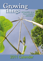 The photographs inside, all taken on Alan’s plot on the Oak Way Allotments in Acton, include unusual ones like a runner bean’s eye view of its climb up a bamboo wigwam, a pumpkin shot against an almost prehistoric looking background and a water drop covered cabbage taken moments after a passing shower.