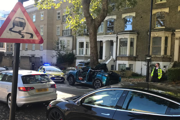 The car with its roof removed after the collision. Picture: ChiswickW4.com