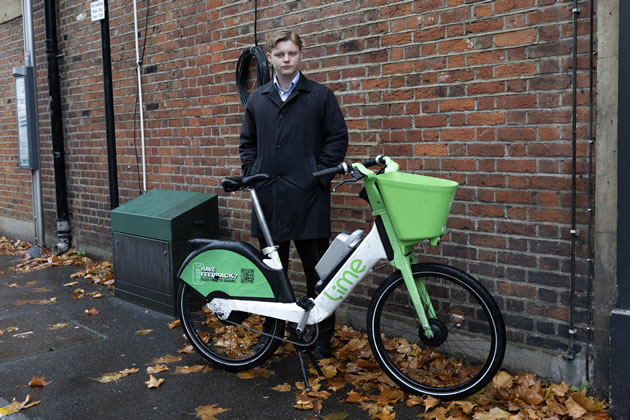 Linden Grigg with a Lime Bike. Picture: Facundo Arrizabalaga/MyLondon