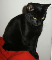 She is black and rather slim european cat, has bright grey collar and a brass tag. She is a domestic cat - never been away for too long.