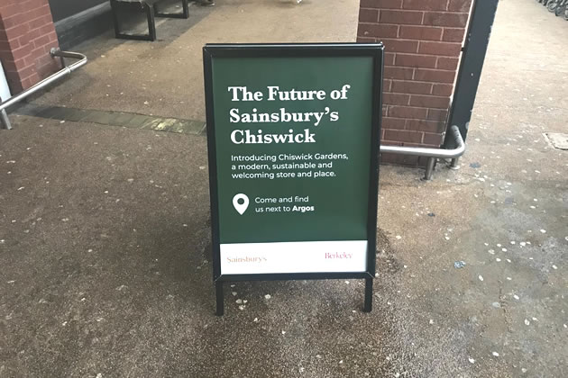 Shoppers at Sainsbury’s in Chiswick were given their first glimpse of long-awaited redevelopment proposals on Thursday (12 February), as representatives from Sainsbury’s and St James – part of the Berkeley Group – held an initial drop-in session inside the store. The plans, branded “Chiswick Gardens”, would see the supermarket rebuilt, a temporary store installed on site, and hundreds of new flats constructed above and around the new retail space.