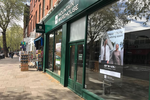 The Mountain Warehouse store on in Chiswick has closed ahead of a refitting to allow it to reopen in a new format. The shop at 264-266 Chiswick High Road is scheduled to relaunch as an Animal-branded store on Friday 15 May. Window displays announcing the change appeared this week, signalling a shift in focus from outdoor gear to surf-inspired lifestyle clothing.