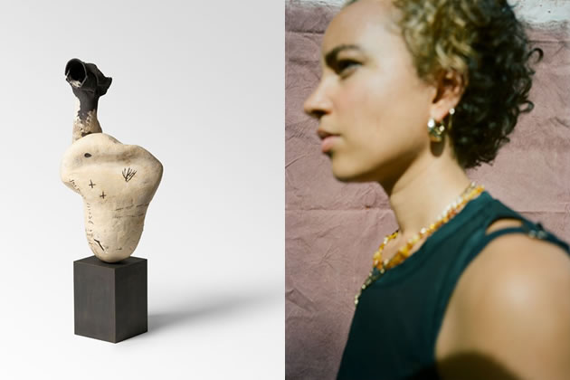 Collings-James’s practice draws on a wide range of influences, from ancient cuneiform tablets and Ashanti folklore to sound design and personal memory. Her recent series Infidels uses Caribbean coiling techniques to create elongated forms with open mouths, suggesting acts of screaming, joy or resistance. The artist describes these works as exploring the figure of the outsider.