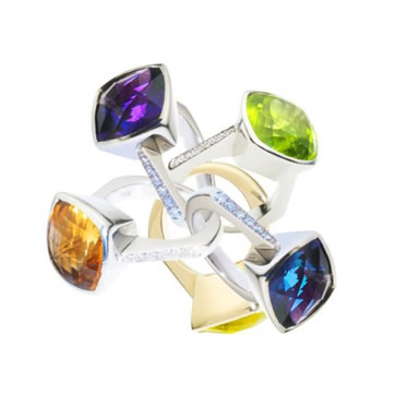 | Colour Box rings Various coloured stones in Gold and diamonds - from £1,500 |