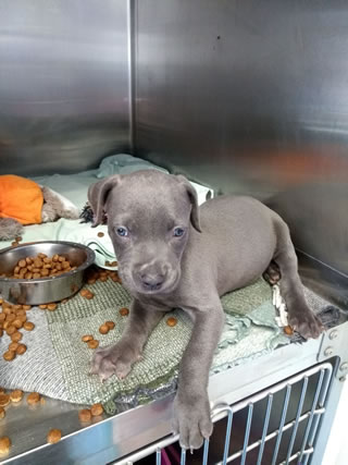 One luck pup Mia, now named Sienna-Blue, was abandoned in Hanwell Cemetery in Westminster in July last year. She was found amongst the headstones by a kind member of the public who contacted the RSPCA.