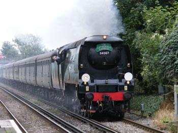 Bulleid's masterful Battle of Britain class 34067 Tangmere, is a regular Cathedrals Express locomotive this year.
