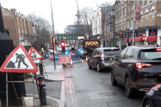 A traffic jam due to roadworks in the borough of Ealing . Picture: Ealing Council